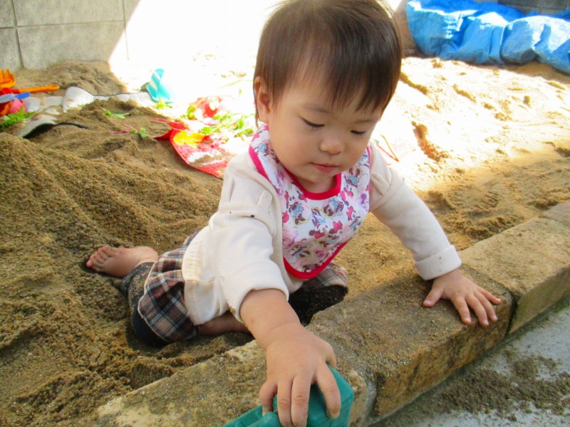 秋風の気持ちいい園庭では、砂場や芝生でいろいろな遊びを楽しみました♪