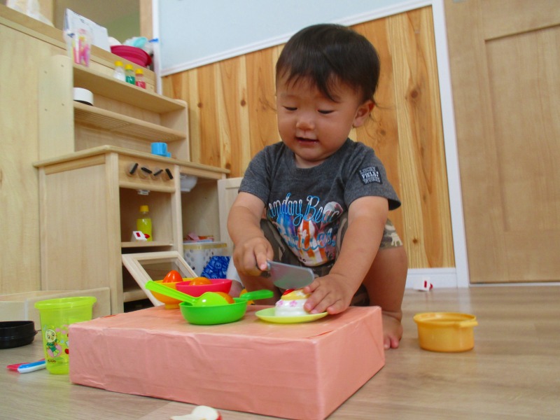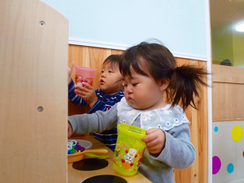見立て遊びをすることが増え、少しずつ遊びが広がっています(^_-)-☆