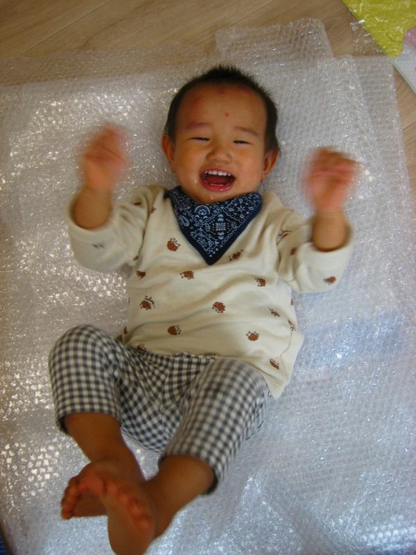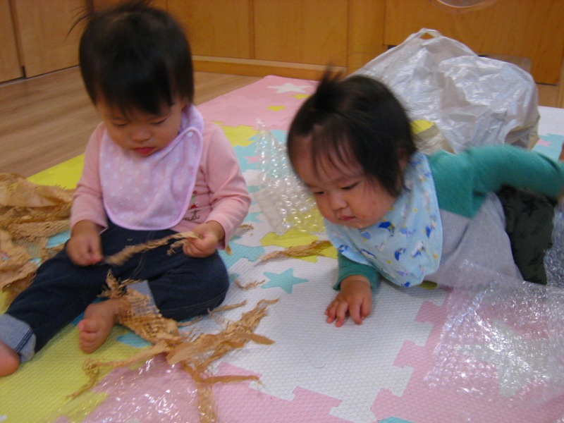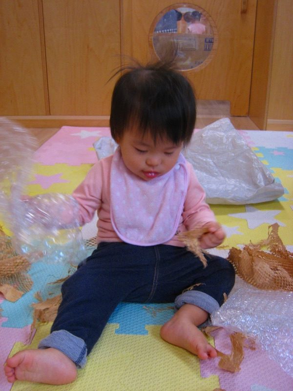 フワフワのプチプチ、カシャカシャのビニール、もしゃもしゃの紙…。