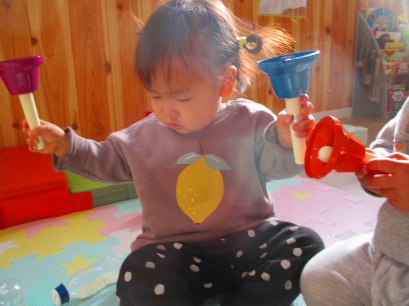 優しく振って音を楽しむ姿が見られました♪