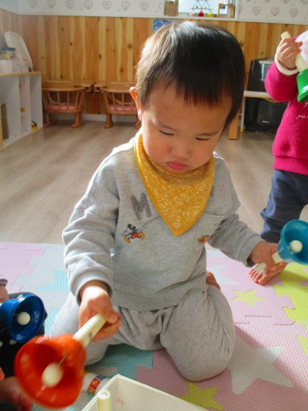 ☆クリスマスにちなんで、ハンドベルを鳴らして楽しみました♪