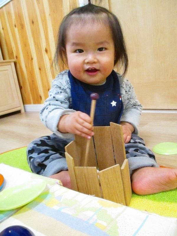 いろいろな「音」に耳を傾けて、のびのびとリズム遊びを楽しんでいます♪